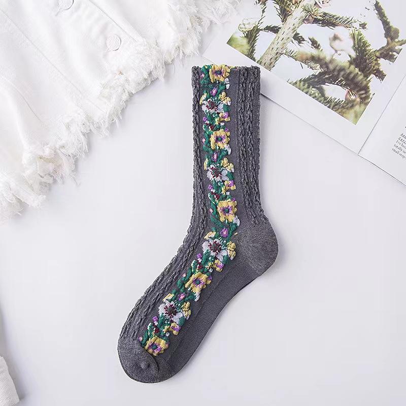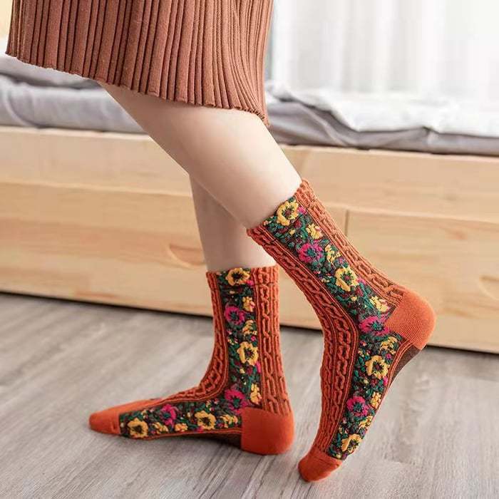 FLORAL KNIT PATTERN SOCKS: our vintage ethnic style socks are made of 80% COTTON 10% POLYESTER 10% SPANDEX. Soft and comfortable. Get compliments and make every day fun with the eye catching and trendy socks.