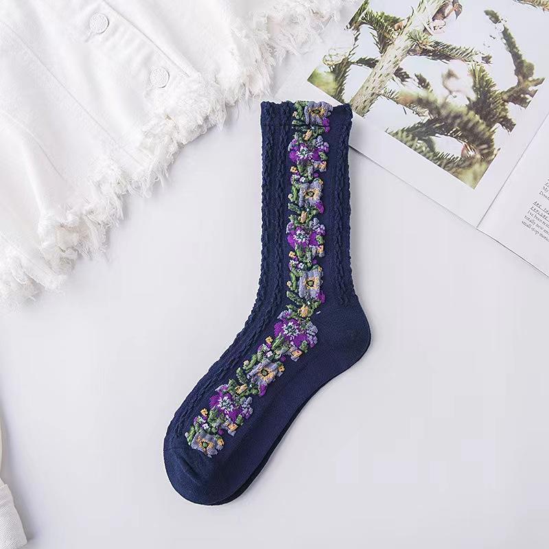 FLORAL DEEP COLOR SOCKS: these high quality women cotton socks feature vintage style and floral design pattern, comes in 5 different color,stretch and gender elastic, fashionable and attractive, brighten up the normal daily life for every special you.