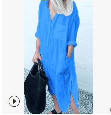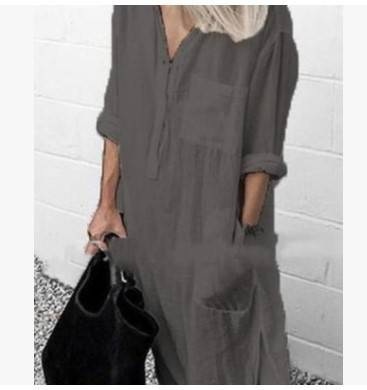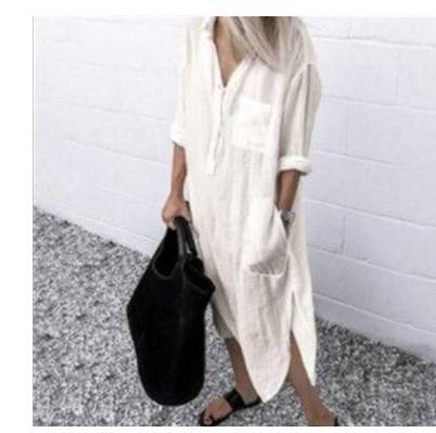 - Relaxed shirt dress with long sleeves, buttoned and loose fit. Simple, chic, elegant and flattering