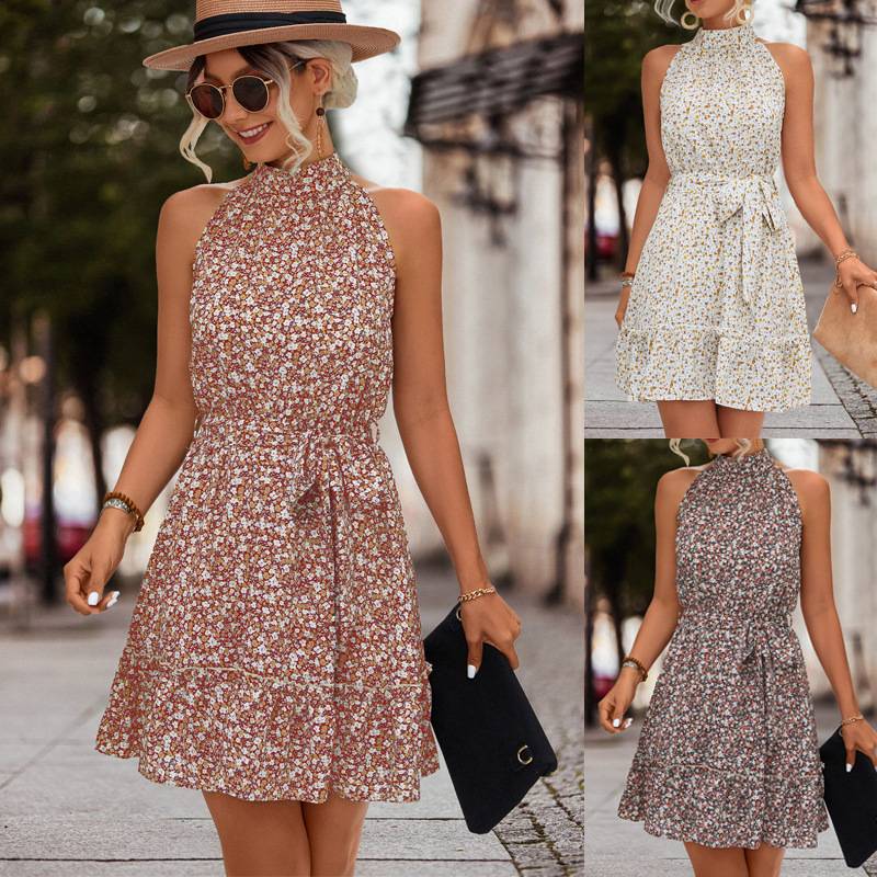- Floral Print Halter Neck Mini Dress