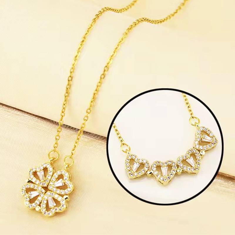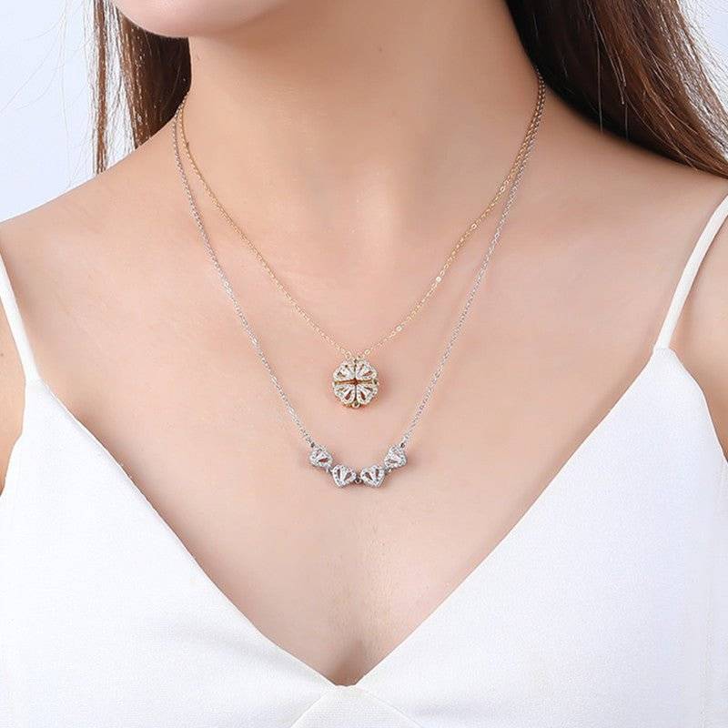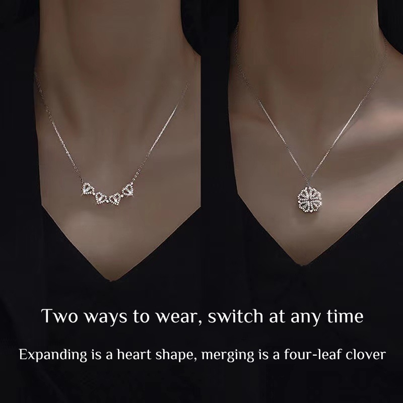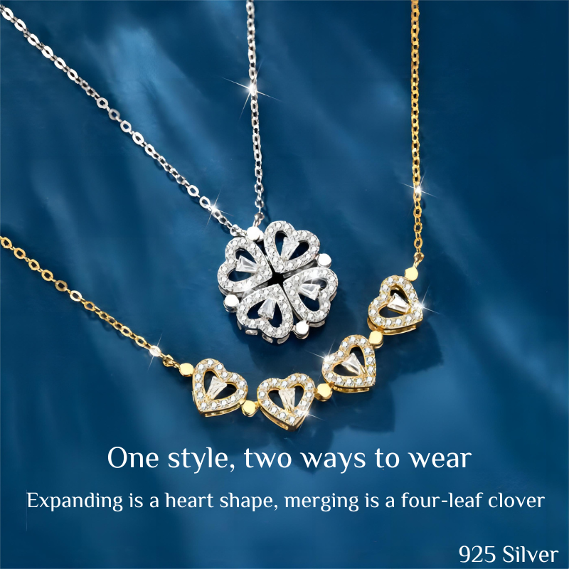 No one can resist the charm of a masterpiece. This is a one-of-a-kind necklace that will add an elegant and sophisticated look to any outfit. We provide 925 silver styles and high-quality titanium steel styles to meet different needs. The necklace can be worn in two ways: Lucky Clover and Romantic Four Hearts. The pendant magnetically combines the hearts connected into a four-leaf clover. This eye-catching pendant necklace is the perfect gift for anyone, especially on Valentine's Day and Mother's Day, or as a birthday present.