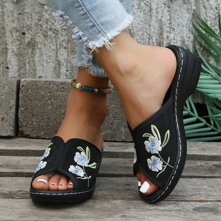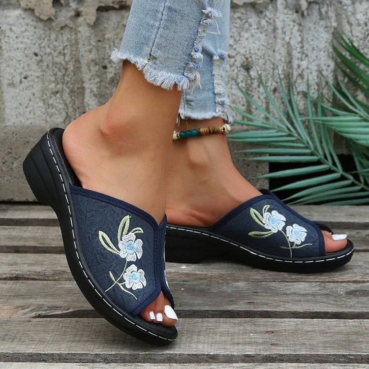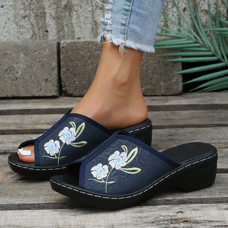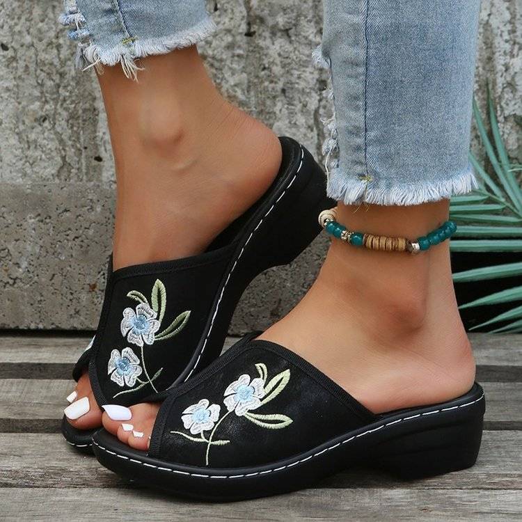 Vintage Embroidered Wedge Slippers - SHETRENDSY