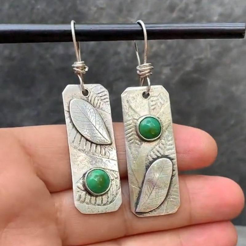 Vintage Square Engraved Leaf Distressed Earrings - SHETRENDSY