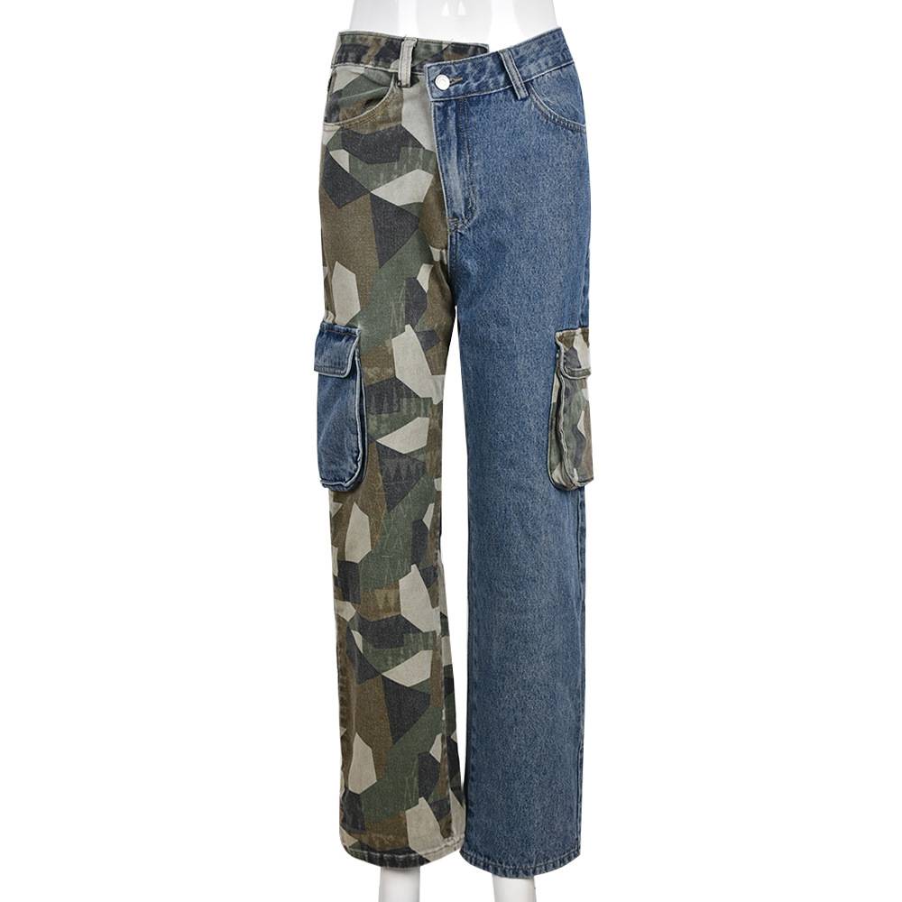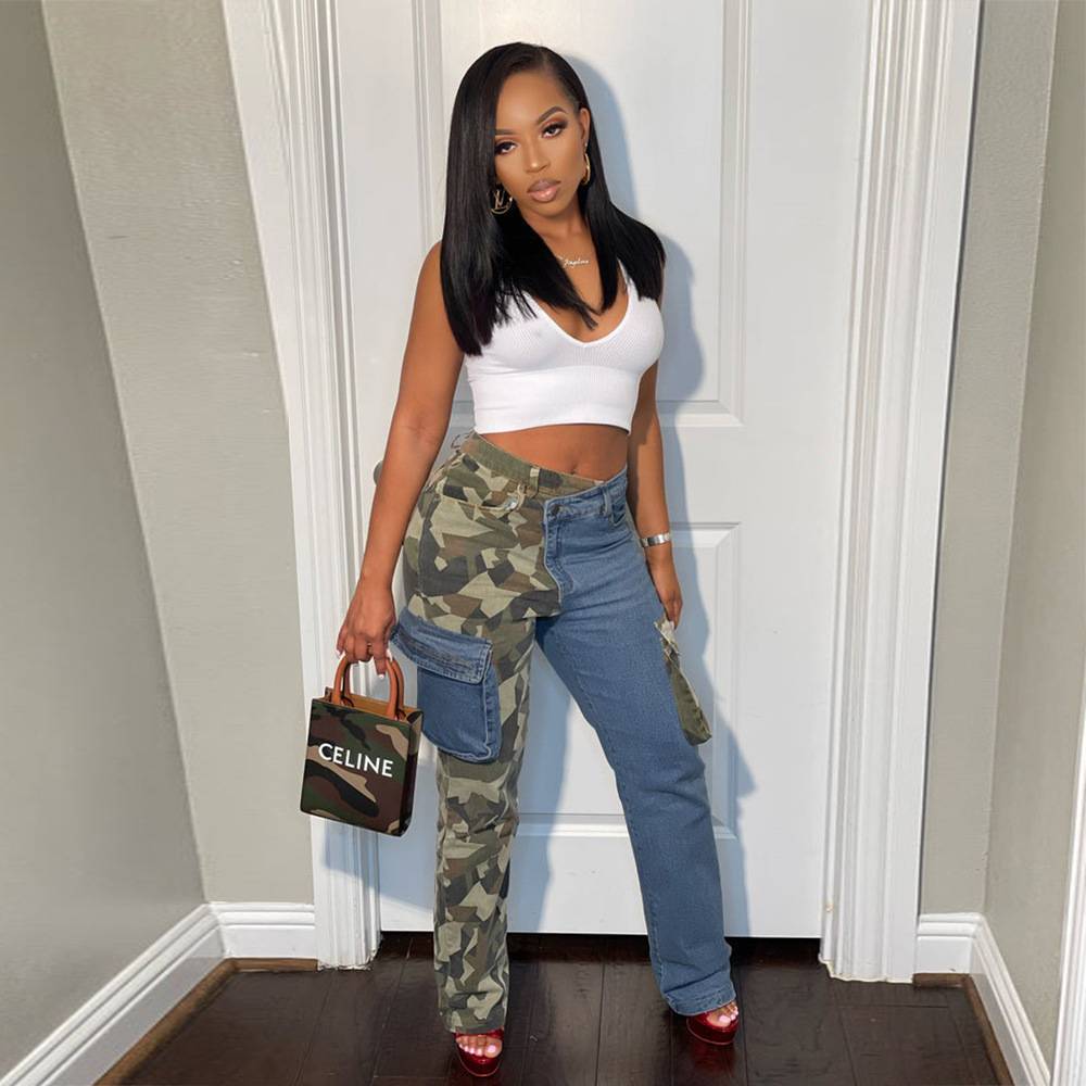 These swaggy color block camo jeans are a must have. Features a soft stretchy denim fabric, off centered zipper closure, side cargo pockets.