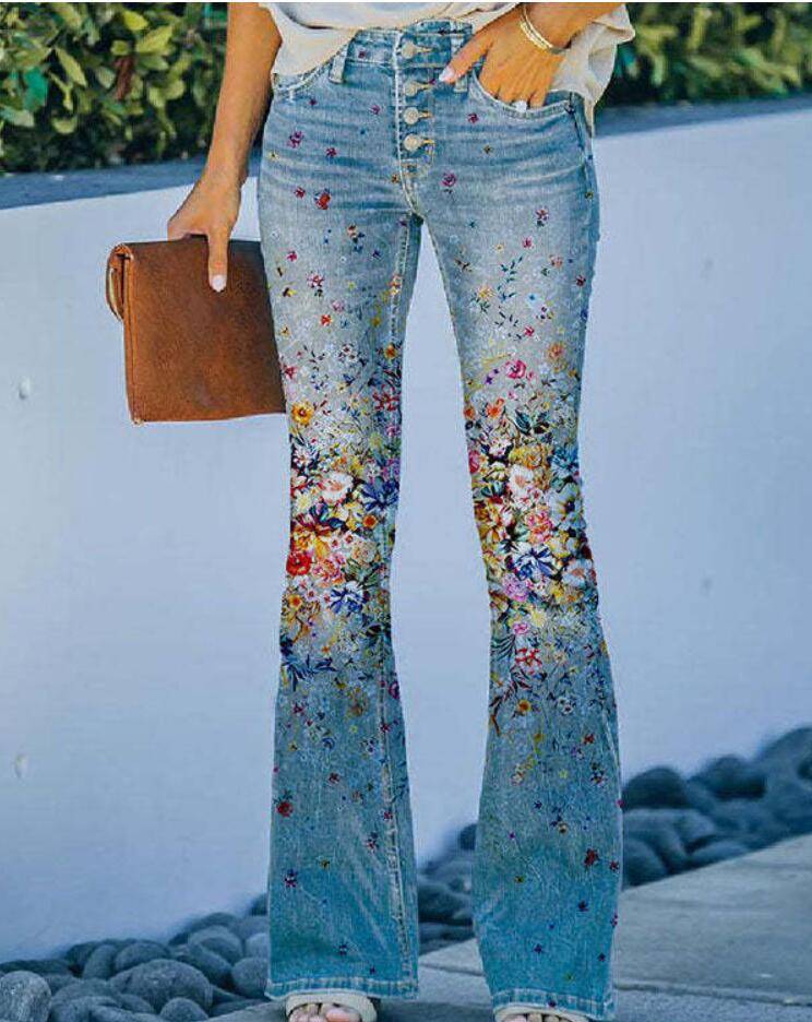 Women's Slim Floral Print Denim Jeans - SHETRENDSY